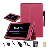 This case sports a simple and classy design made from synthetic leather, and the interior is lined with non-scratch material so you don’t need to worry about any damages. Simply insert your Kindle Fire in the open pocket and secure it in place with the velcro flap. There is also a magnetic strip built inside for a secure closure. Because the cover is uniquely designed to flip back and transform the case into a com… More >>