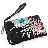 Silky Satin Padded Mobile Cell Phone Pouch – Oriental Brocade Floral Print – Black – iPhone Case